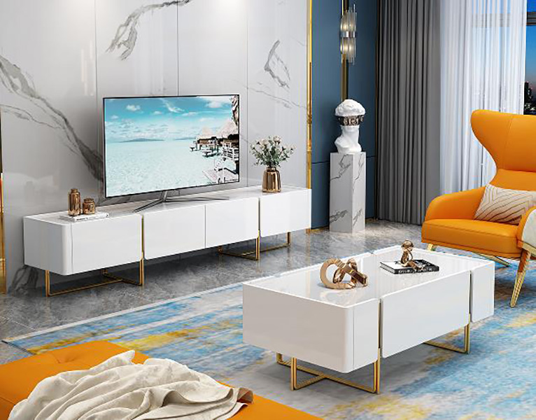 Contessa TV Stand & Coffee Table Gloss White & Silver